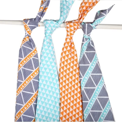 Bacati – Liam Aztec Print Aqua/Orange/Navy Triangles Muslin Swaddling Blankets Set Of 4