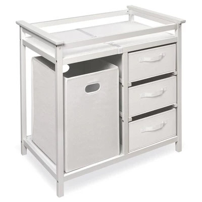 Badger Basket’s stylish Modern Baby Changing Table with Hamper and 3 Baskets is a practical and structured place for diaper changing, dressing baby for the day or night, and stashing diapers, wipes, toiletries, toys, blankets, dirty clothes, and more. Many safety features built in for peace of mind!