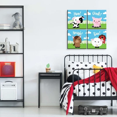 Farm Animals Wall Art Set INCLUDES 4 ready-to-hang barnyard themed panels and non-marking wall mounts for easy hanging. Farm Animals artwork is perfect for home decor. Farm Animals Kids Room, Nursery and Home Decor SIZE each 10 inches high x 7.5 inches wide x .5 inches thick. Barnyard lightweight art prints will arrive ready to use – no frame needed. The black edge gives each print a modern, finished look. EASY TO HANG: Simply attach a non-marking wall mount (included) to each corner of a Farm Animals art panel and press to hang in desired location. Wall mounts are repositionable, so you can redesign your artwork display at any time. PREMIUM HOME DECOR: 4-piece Farm Animals Wall Art Set is professionally printed on thick material with a black edge. You will not need to frame this set of barnyard room decor. Each standout print is ready to hang and will add a contemporary touch to any room. MADE IN THE USA: Farm Animals Room Decor is designed and manufactured at our Wisconsin facility using materials that are Made in the USA.