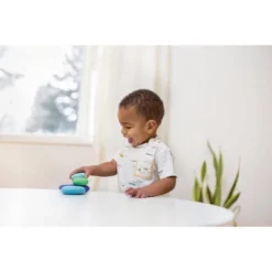 This sweet playmat will give your baby an elephant-approved hug with every playtime snuggle. The Bright Starts Hug-N-Cuddle Elephant Activity Gym creates the comfiest space for tummy time or lay-and-play fun. In any play position, your little one will have a blast shaking, rattling and squeezing the 5 take-along toys included, like our newest and loveably slooooooowest character – the sloth! Captivate baby with fun activities during tummy time, like our engaging satin Taggies or peek-a-boo mirror. As baby gets bigger, you can remove the toy bar and transform the elephant into a cushy play mat and soft, cuddle-worthy friend. This plush activity gym will give you and baby plenty of room to snuggle for years to come.